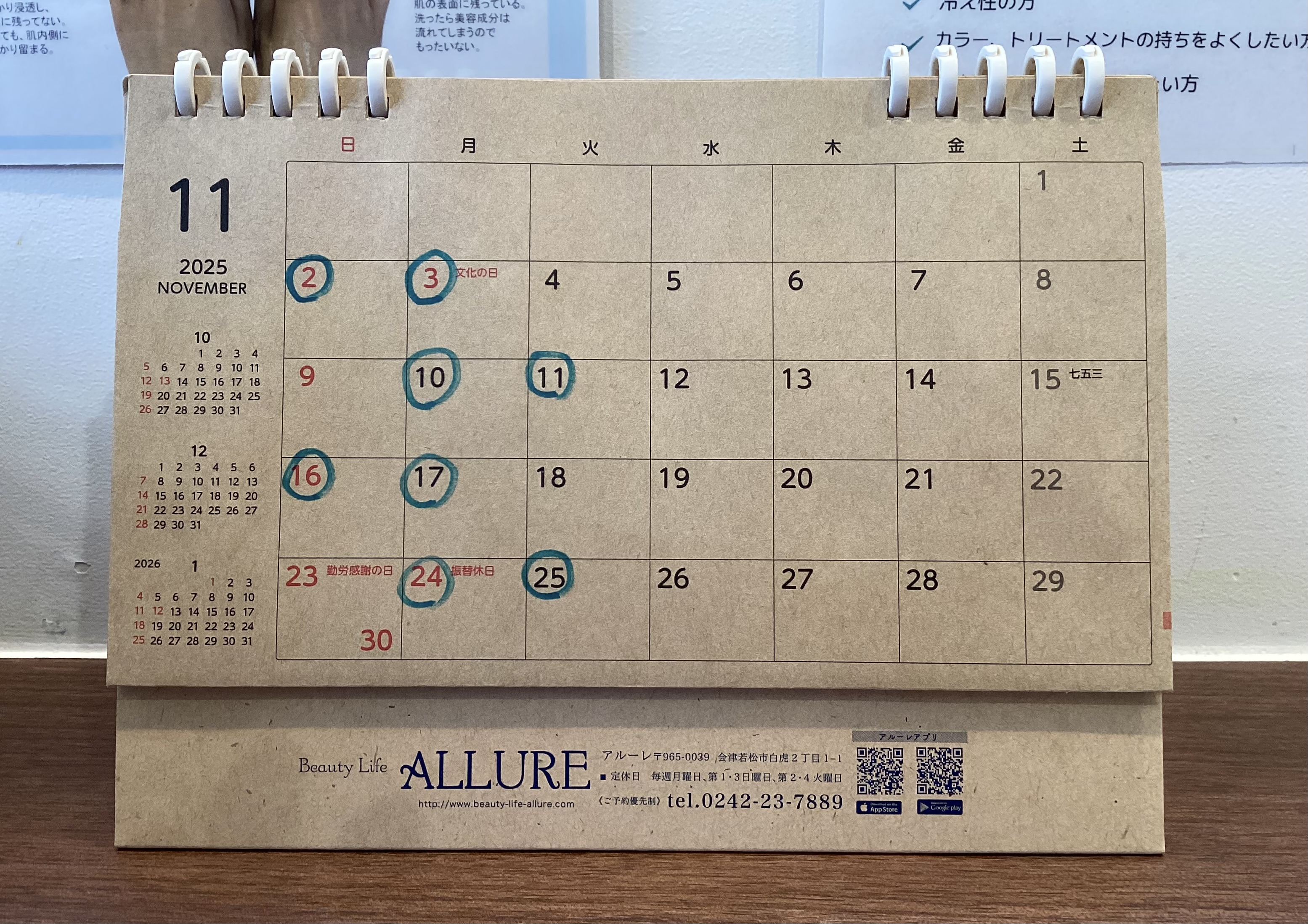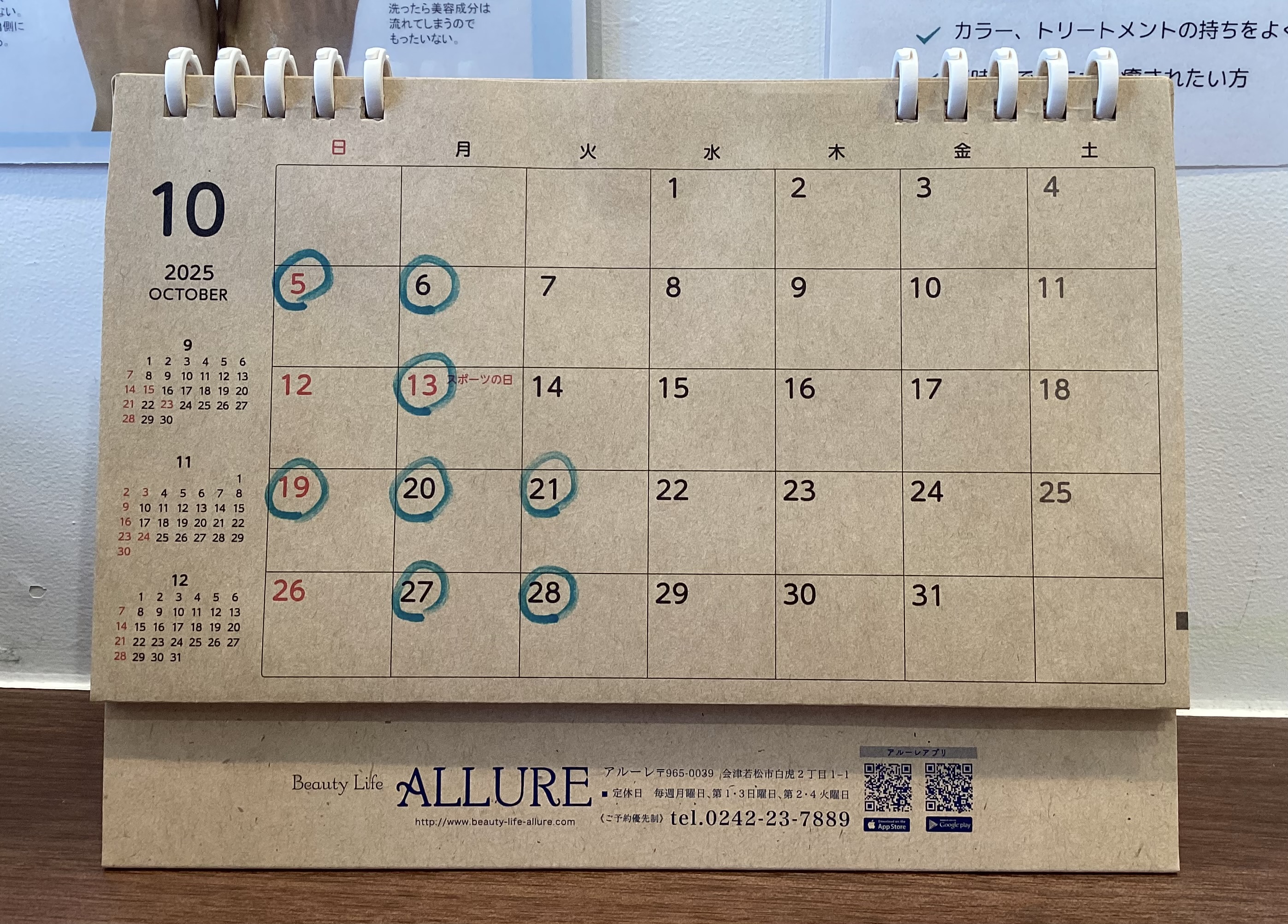 9月・10月・11月のお休みのお知らせ 2025-07-04 (金) いつもアルーレをご利用いただきありがとうございます✨9月・10月・11月のお休みです!※お店の都合などでお休みの変更があるかもしれませんので、その場合は訂正して掲載いたします。